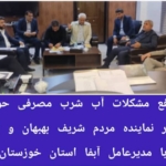 بررسی و رفع مشکلات آب شرب مصرفی حوزه انتخابیه، در دیدار نماینده مردم شریف بهبهان و آغاجاری با مدیرعامل آبفا استان خوزستان پدرام کسائی ?به گزارش پایگاه خبری بهبهان صدا به نقل از روابط عمومی دفتر ارتباطات مردمی نماینده مردم شریف بهبهان و آغاجاری با حضور محمدطلا مظلومی نماینده مردم شریف بهبهان و…