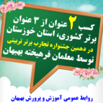 کسب۲عنوان از ۳ عنوان برتر کشوری، استان خوزستان در دهمین جشنواره تجارب برتر تربیتی توسط معلمان بهبهانی پدرام کسائی به گزارش بهبهان صدا به نقل از روابط عمومی مدیریت آموزش و پرورش بهبهان، رسول عبدی پور با اعلام این خبر گفت: «دهمین دوره جشنواره تجارب برتر تربیتی در…