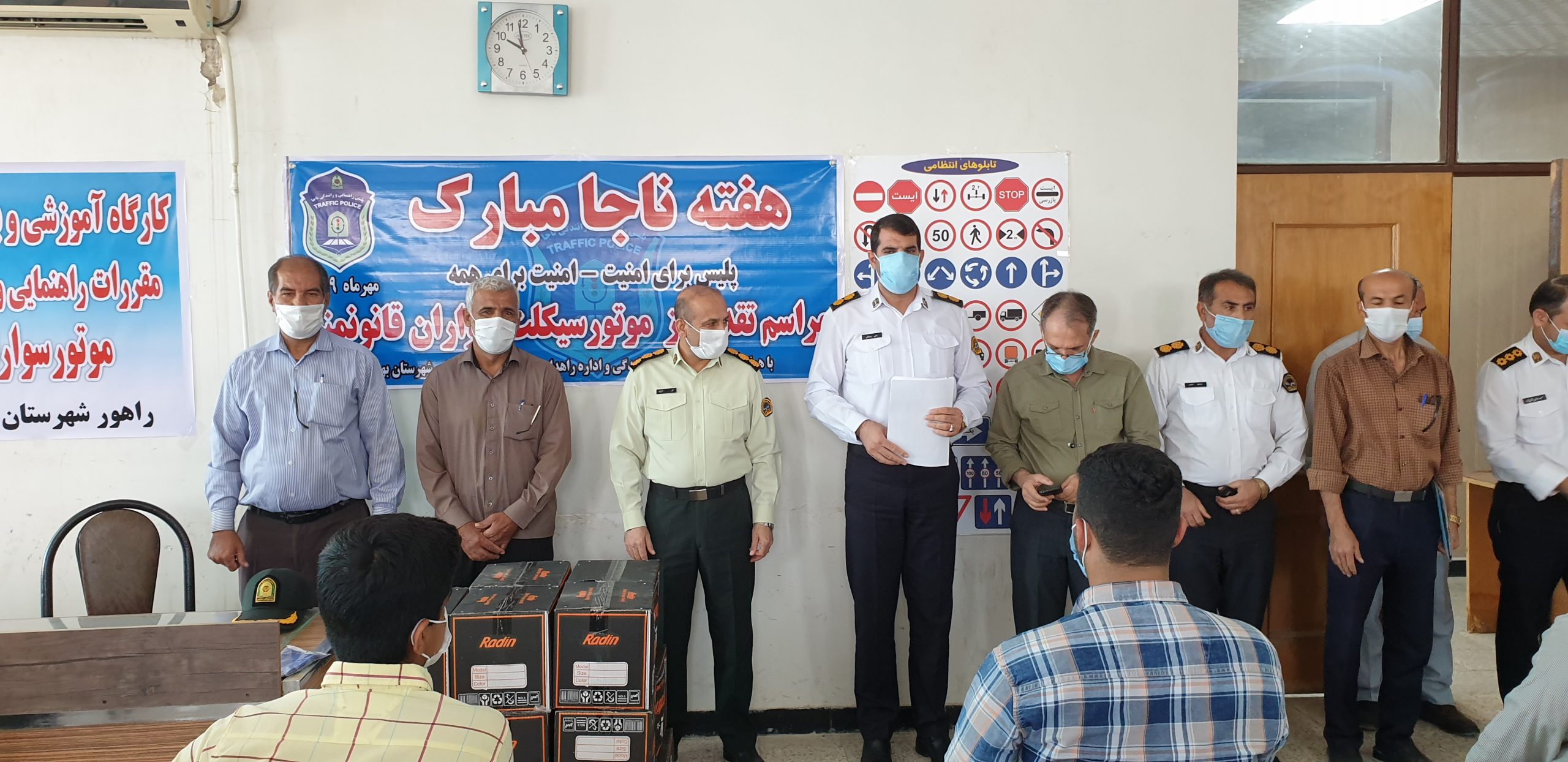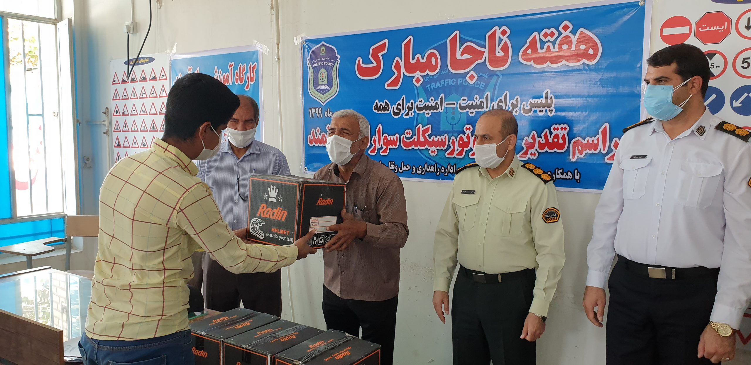 به گزارش پایگاه خبری ندای بهبهان، صبح امروز و در مراسمی با حضور فرمانده منطقه انتظامی، رئیس اداره راهداری و حمل و نقل جاده ای، بخشدار مرکزی، رئیس شورای شهر، فرمانده پلیس راه و رئیس پلیس راهور شهرستان بهبهان از ۵۰ موتور سوار بهبهان که قوانین راهنمایی و رانندگی را رعایت کرده و تخلفی نداشته اند با اهدای کلاه ایمنی تجلیل شد.