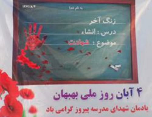 ۴ آبان روزیست که نه تنها بهبهان، بلکه ملت ایران برای مظلومیت دانش آموزان مدرسه پیروز گریستند.