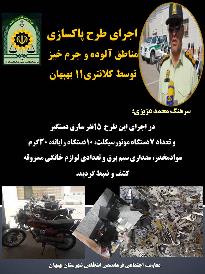 به گزارش ندای بهبهان به نقل از پایگاه خبری پلیس، سرهنگ “محمد عزیزی” پیرامون جزئیات این خبر گفت: طرح پاکسازی مناطق آلوده و جرم خیز با هدف برخورد قاطع با سارقان ، توسط ماموران این فرماندهی پس از هماهنگی با مرجع قضائی به مرحله اجرا درآمد.