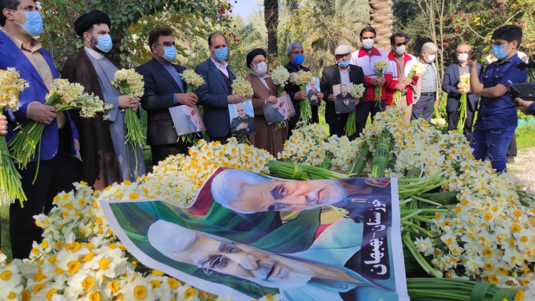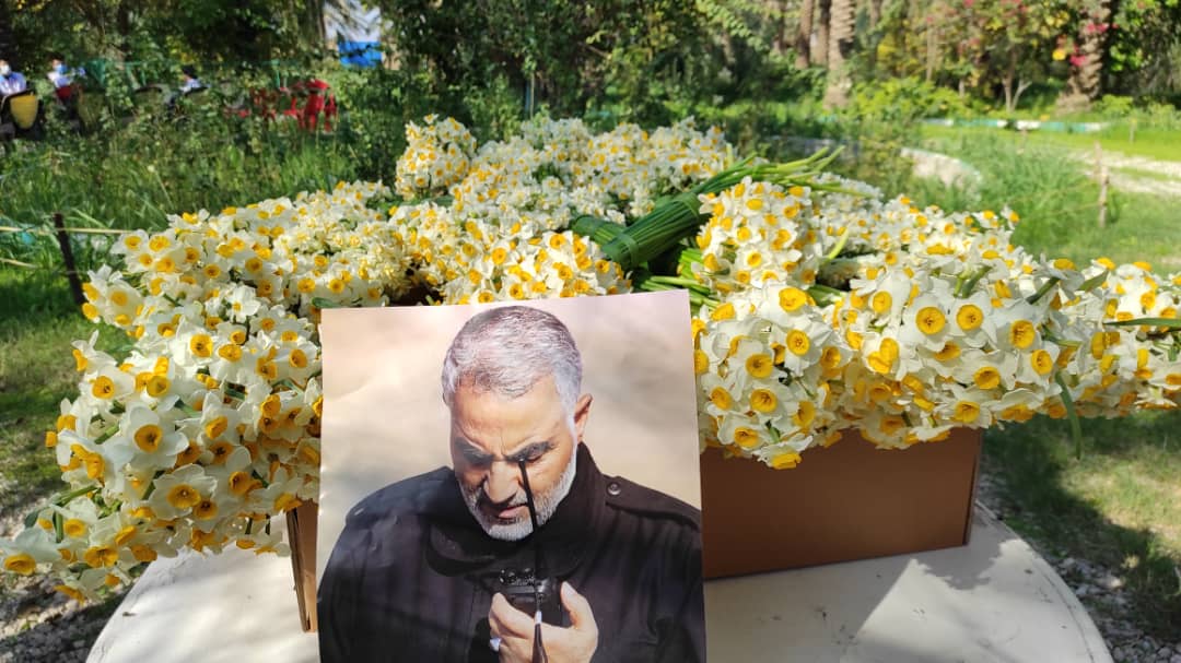 اهدای ۶ هزار شاخه گل نرگس بهبهان به مزار سردار شهید حاج قاسم سلیمانی