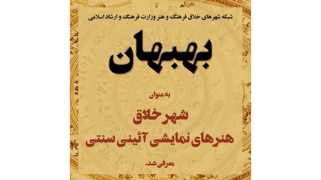 در رویداد شبکه شهرهای خلاق فرهنگ و هنر تعداد ۳۶۷ شهر از ۳۱ استان کشور برنامه‌های خود را در هفت حوزه ادبیات، موسیقی، صنایع دستی و سنتی، مد و لباس، سینما، هنرهای نجسمی و هنرهای نمایشی به دبیرخانه ارسال کردند و پس از چند مرحله ارزیابی تعداد ۱۴۳ شهر به مرحله نیمه نهایی راه یافتند و در مرحله نهایی نیز ۶۰ شهر توانستند امتیاز حضور در اولین دوره شبکه شهرهای خلاق فرهنگ و هنر را به دست آورند که شهرستان بهبهان از سوی وزیر فرهنگ و ارشاد اسلامی به عنوان «شهر خلاق هنرهای نمایشی آیینی سنتی» معرفی شد.