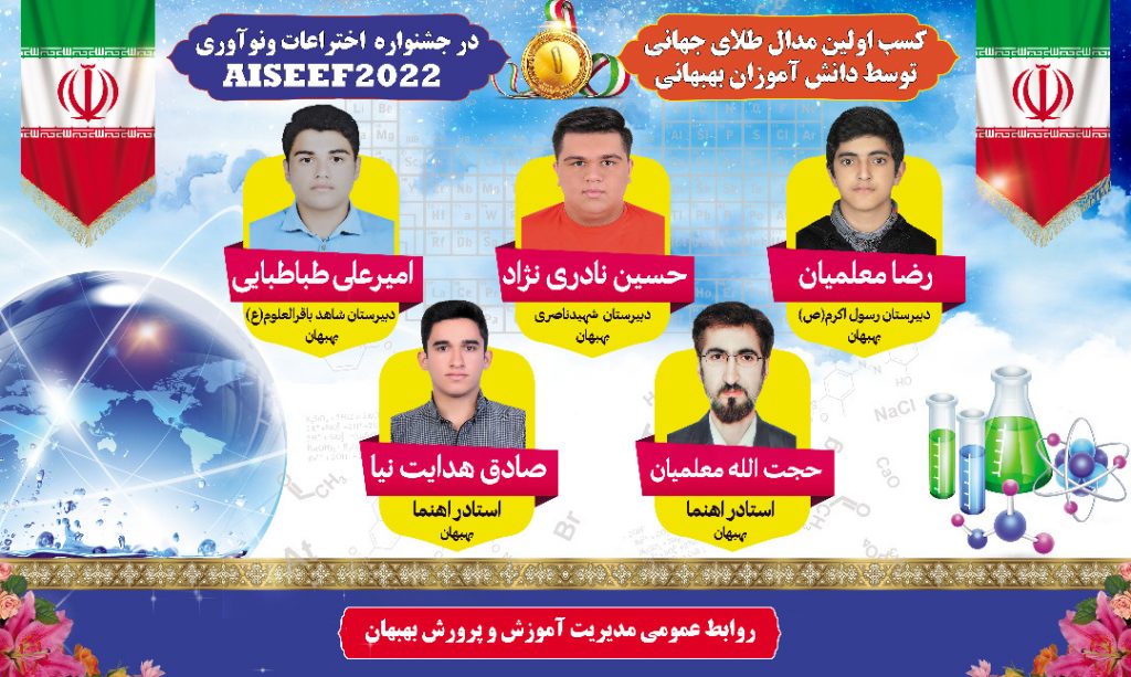 درخشش بی نظیر دانش آموزان بهبهانی با کسب اولین مدال طلای جهانی در جشنواره اختراعات ونوآوری AISEEF2022