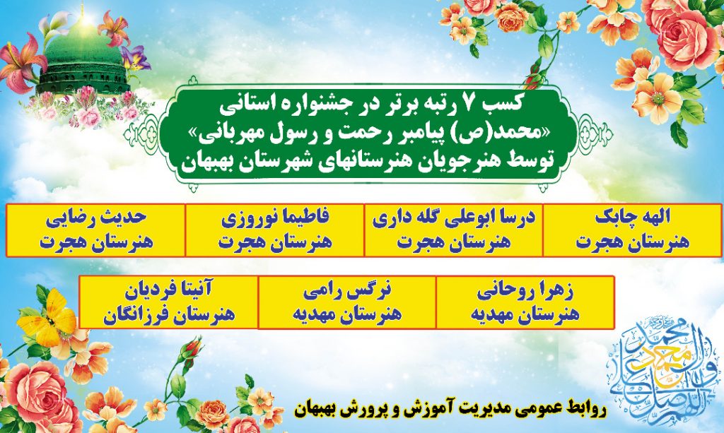 کسب ۷ رتبه برتر در جشنواره استانی «محمد(ص) پیامبر رحمت و رسول مهربانی» توسط هنرجویان هنرستان های شهرستان بهبهان