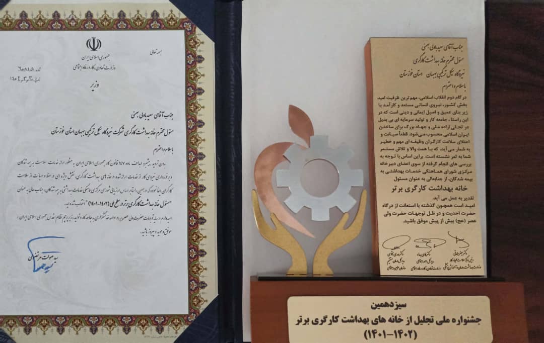 کسب رتبه برتر نیروگاه سیکل ترکیبی بهبهان در سیزدهمین جشنواره ملی تجلیل از کارفرمایان سلامت محور