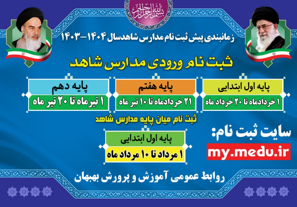 زمانبندی پیش ثبت نام مدارس شاهد سال۱۴۰۴-۱۴۰۳