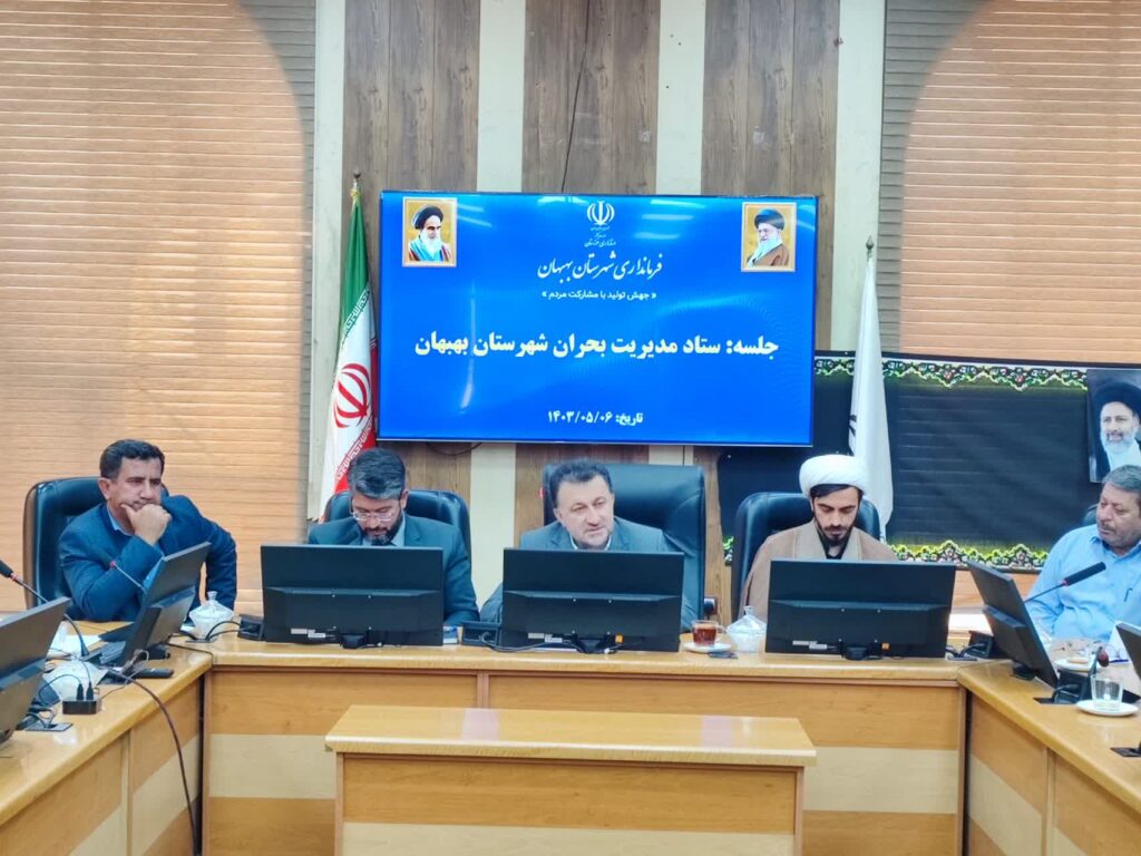 به گزارش بهبهان صدا به نقل از روابط عمومی فرمانداری شهرستان بهبهان، صبح امروز مورخ شنبه ۶ مردادماه جلسه ستاد مدیریت بحران شهرستان بهبهان به ریاست سید ولی الله موسوی فرماندار شهرستان بهبهان، و با حضور معاون مدیرکل مدیریت بحران استان خوزستان، نماینده دادستان شهرستان بهبهان و اعضای ستاد مدیریت بحران شهرستان در فرمانداری برگزار شد.