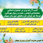 مدیر آموزش و پرورش بهبهان خبر داد کسب ۷ رتبه برتر در جشنواره استانی «محمد(ص) پیامبر رحمت و رسول مهربانی» توسط هنرجویان هنرستان های شهرستان بهبهان پدرام کسائی مدیر آموزش و پرورش بهبهان از کسب 7 رتبه برتر در جشنواره استانی «محمد(ص) پیامبر رحمت و رسول مهربانی» توسط هنرجویان هنرستان های شهرستان بهبهان خبر داد.
